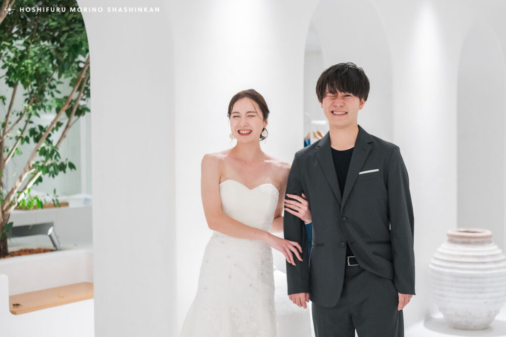 ギリシャを思わせる白亜の建物が並ぶプリシアリゾートヨロンでは、建物やガーデン、プライベートビーチなど、多彩なシチュエーションでの撮影が可能です。リゾートウェディングの雰囲気が好きな方にはたまらない場所です(プリシアリゾートヨロンをお借りしてのウェディングフォト撮影には事前予約と利用料が必要です)。